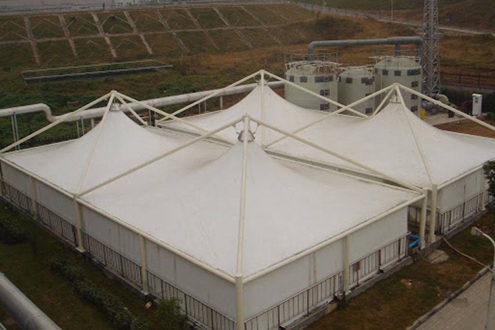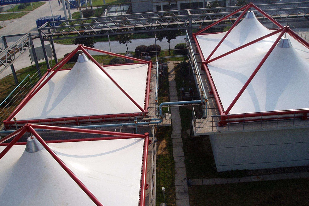 Main principle of the sewage treatment cover: above the sewage pool add environmental materials cover, prevent waste gas to the air pollution, the shield surface to add the outlet, ventilation pipes, the fan will suction exhaust to purification tower, acidic waste gas absorb by alkaline liquid circulation, alkaline waste gas absorb by the acid circulation spray, so emissions meet the national standards.